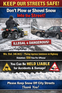 Plowing Snow/Ice onto City Streets or Highways Please help us keep our City streets and…