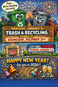 Thursday, January 1st garbage & recycling will be picked up on Wednesday, December 31st ….