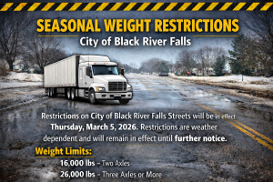 Seasonal weight restrictions on City of Black River Falls Streets will be in effect Thursday,…