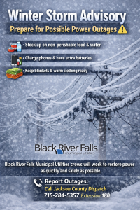 WINTER STORM ADVISORY The Black River Falls Municipal Utilities (BRFMU) is asking customers to prepare…