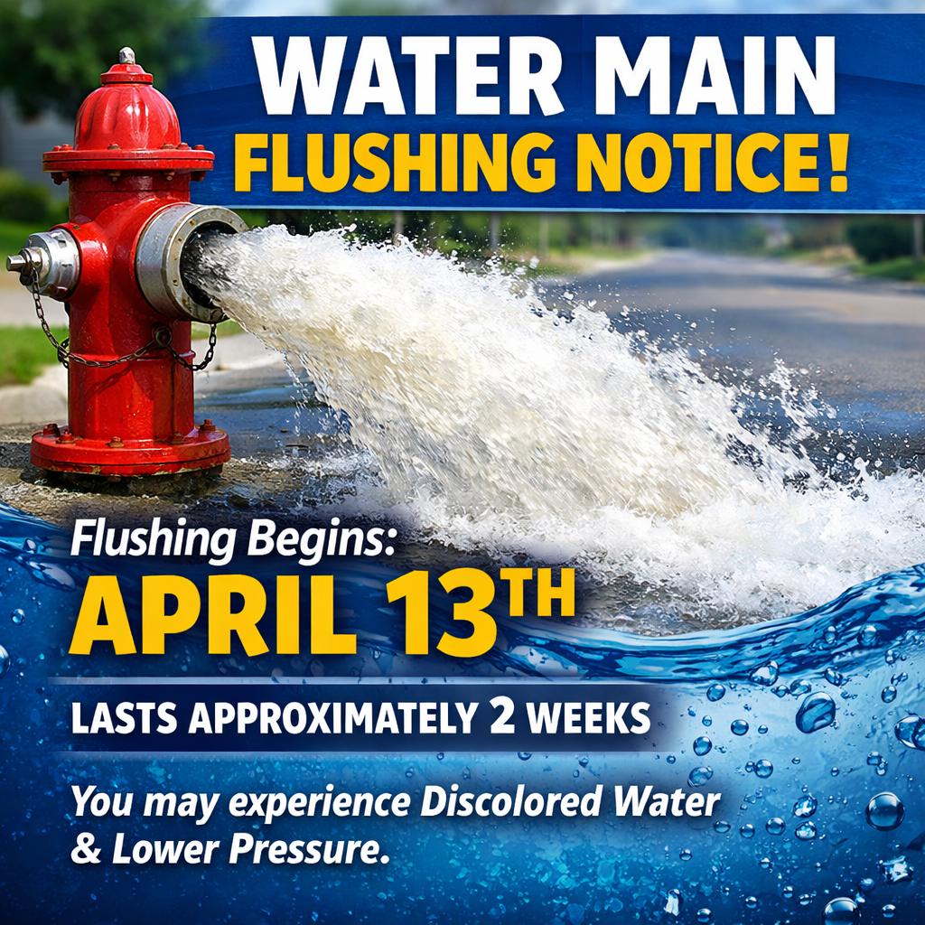 The Black River Falls Water Utility announces they will be flushing water mains beginning on April 13th, 2026 and will continue until finished.